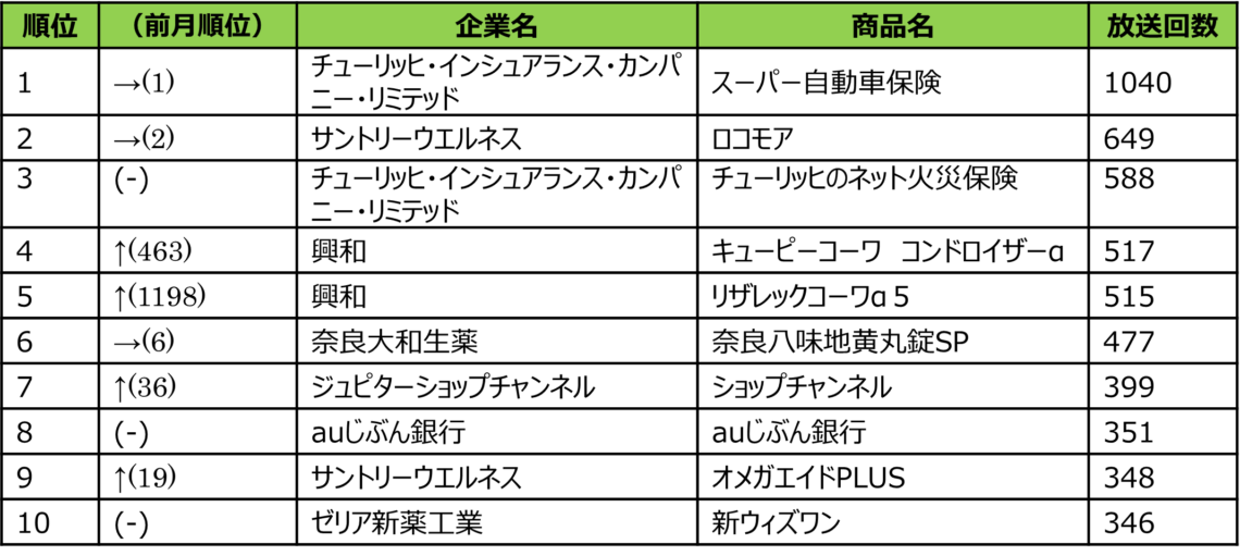 ■2025年12月度 商品別テレビCM放送回数(全国地上波25局、BS放送6局合計)